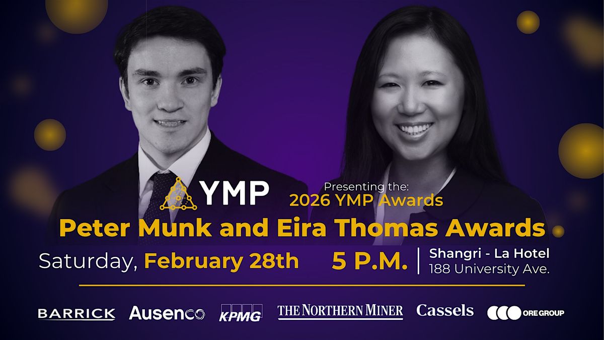 Join us Saturday, February 28th at the Shangri-La for a night of celebration during PDAC weekend, as we honour Frederick Bell, President & COO of Elemental Altus Royalties, and Victoria Liu, Corporate Development & M&A Practice Lead at BHP Group, with the Peter Munk & Eira Thomas Awards.
