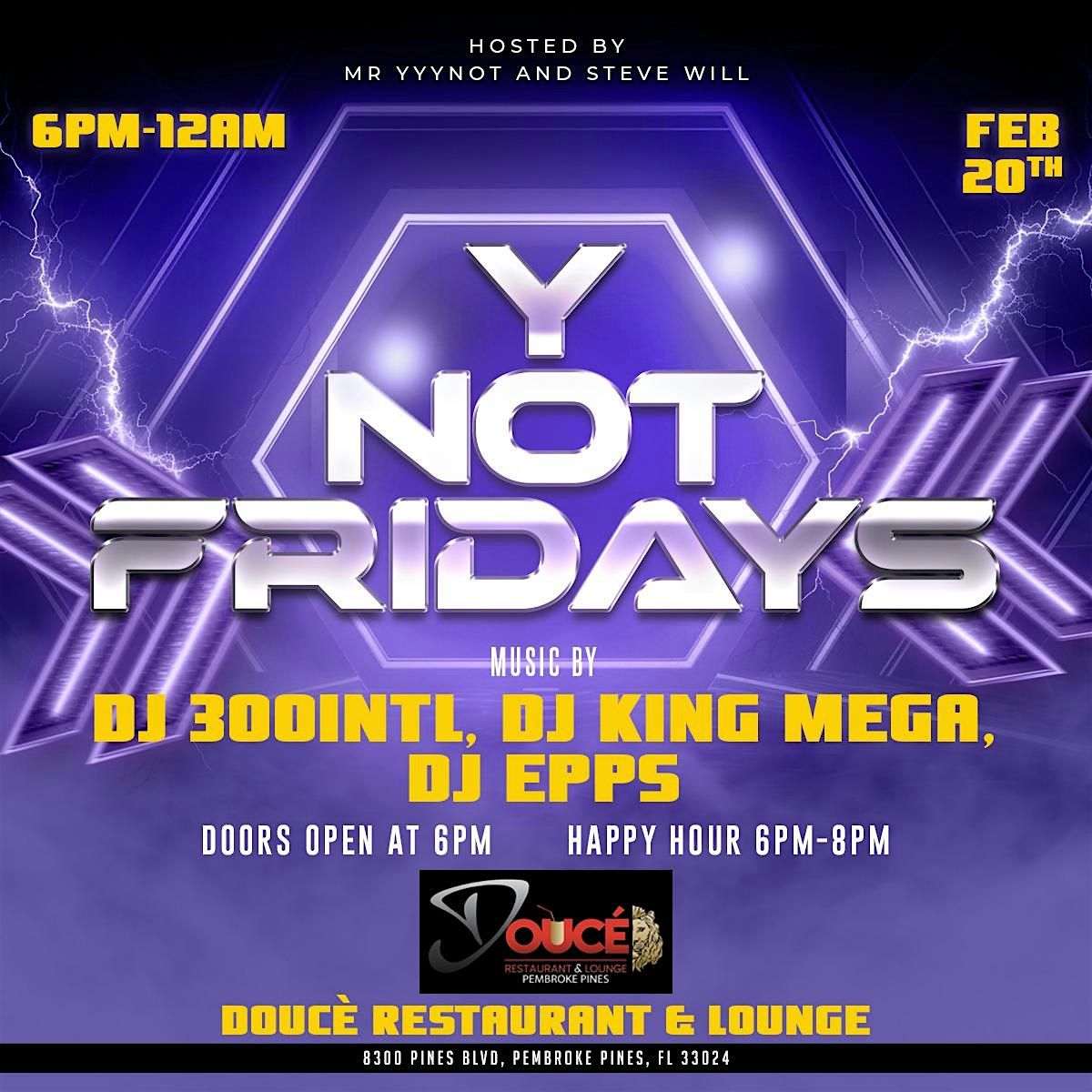 YNOT FRIDAYS: MUSIC BY DJ EPPS, DJ300 , DJ King MEGA Special Guest DJ Tony Heathcliff-HIP-HOP R&B REGGAE. GOOD VIBES 6PM TO 12AM.