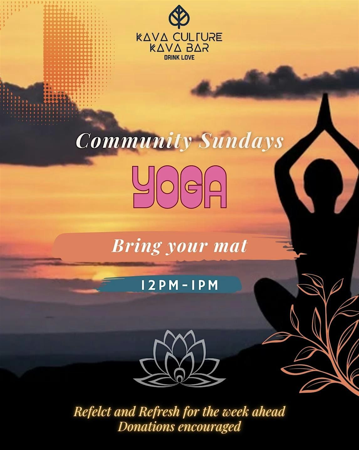 Get ready to stretch, breathe, and find your Zen at our upcoming Yoga event every Sunday at noon. Beginner friendly yoga class.