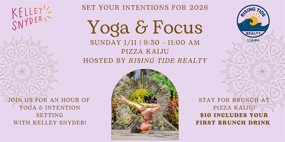 Please join Rising Tide Realty for a session of yoga & intention setting with Kelley Snyder, and stay for brunch with us afterward at Pizza Kaiju! Your first drink is free with your $10 ticket purchase. (Adult beverages included.)