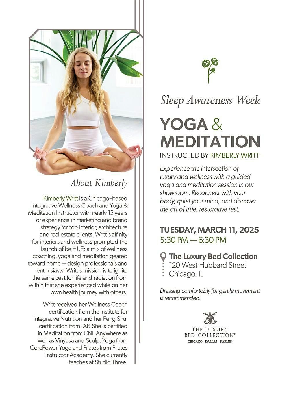 Experience the intersection of luxury and wellness with a guided yoga and meditation session in our showroom. Reconnect with your body, quiet your mind, and discover the art of true, restorative rest.