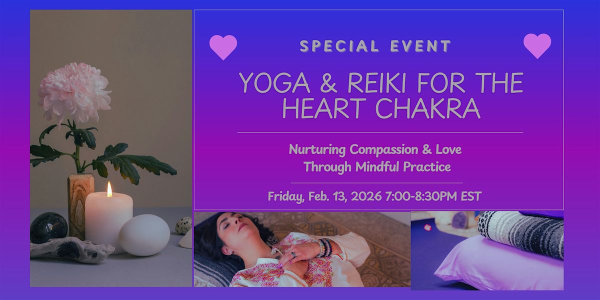 Join us for a transformative evening centered on Anahata, the heart chakra, to foster self-compassion, emotional balance, and inner harmony. This event blends gentle, heart-opening yoga postures with guided meditation to support participants in releasing tension held in the chest, shoulders, and upper back, inviting ease and openness. Throughout the session, Reiki will be offered to enhance relaxation, clear energetic blockages, and promote overall well-being.