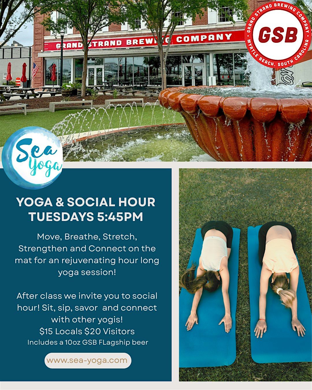 Release the workday stress with an hour long, all levels yoga flow facing the ocean! After class, relax and enjoy a nice cold Grand Strand Brewing Flagship Draft or non alcholic beverage and connect with other yogis! $15 locals, $20 visitors, kids are free!