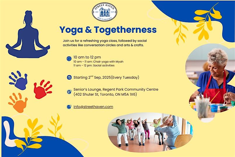 Take a break and recharge with a refreshing yoga class designed to help you relax, stretch, and restore balance. After the session, enjoy meaningful social activities including conversation circles and arts & crafts, offering a chance to connect with others in a fun and welcoming environment. This event is a perfect opportunity to move your body, nurture your creativity, and build community while unwinding in a supportive and stress-free space. All experience levels are welcome.