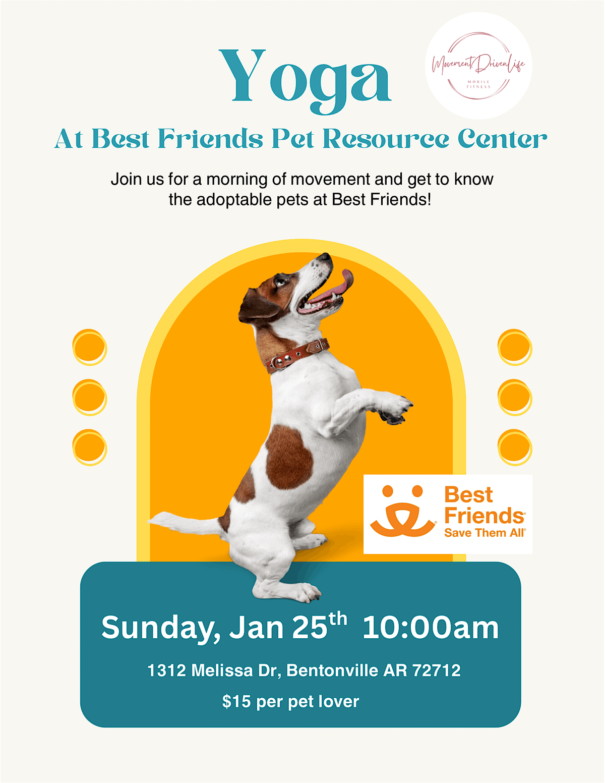 NWA's first mobile fitness studio, Movement Driven Life, is leading all-levels yoga class at Best Friends you will not want to miss!