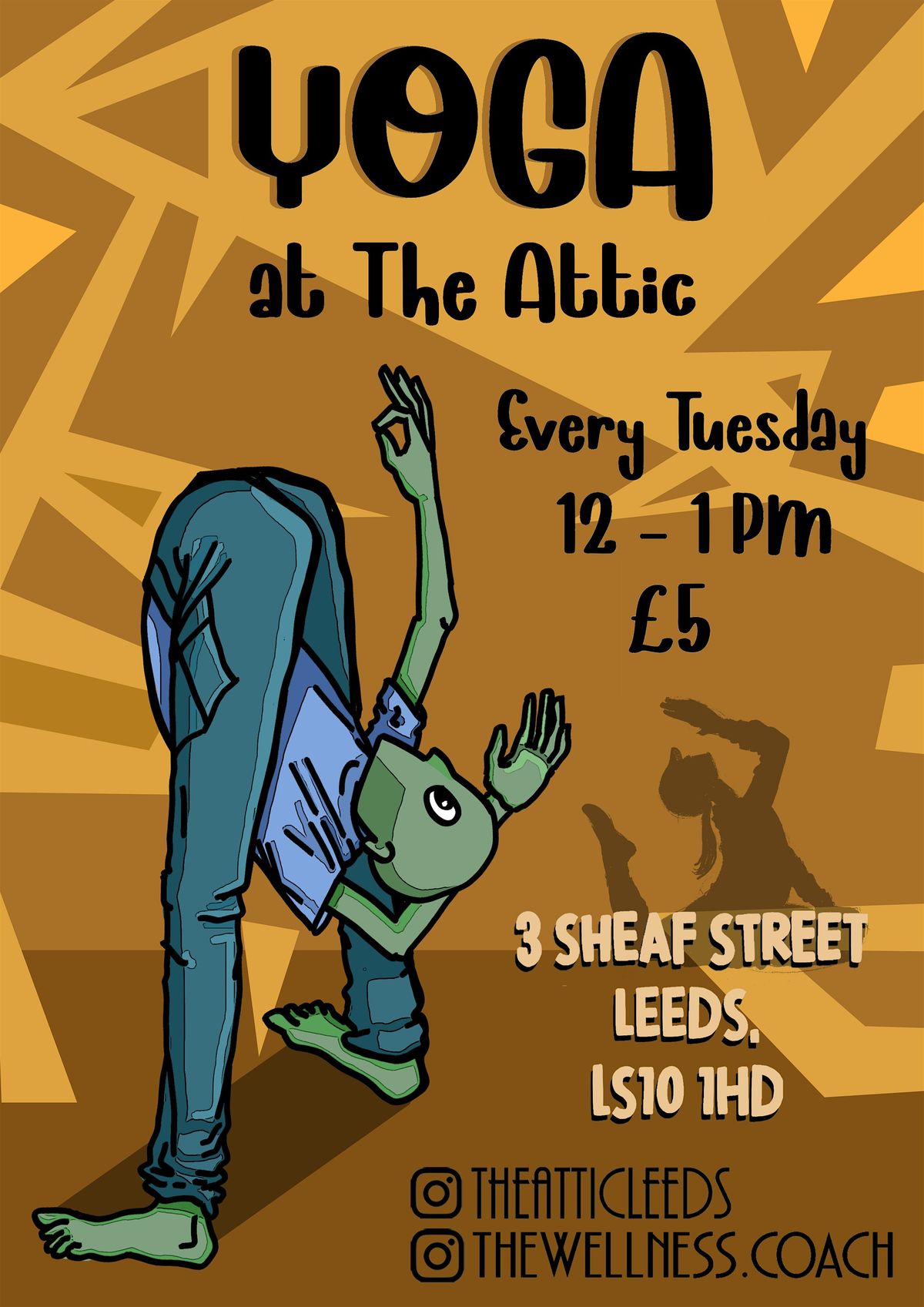 Yoga At The Attic with Amy Thwaites, every Tuesday 12-1pm. £5. Limited spaces.