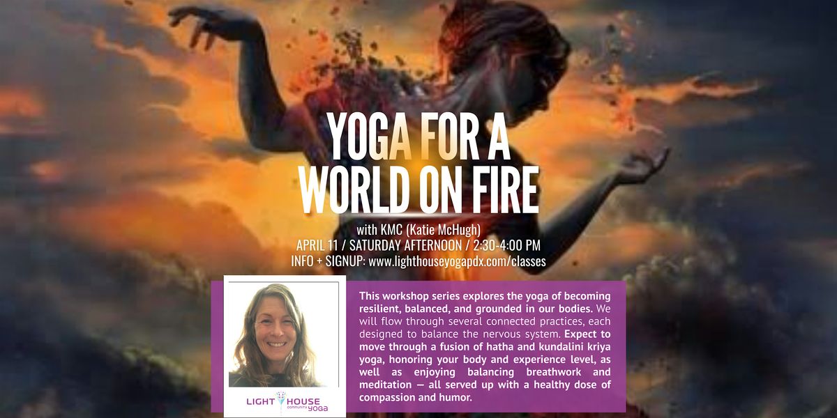 YOGA FOR A WORLD ON FIRE *Hatha+Kundalini* with KMC (Katie McHugh) @ Lighthouse Community Yoga PDX / APRIL 11 / SATURDAY AFTERNOON / 2:30-4:00 PM / *ALL-LEVELS*