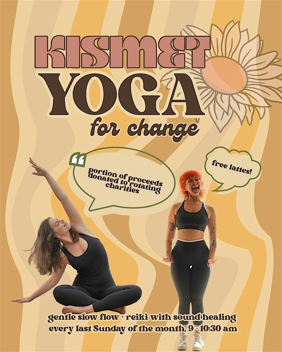 Tickets are $22. We are passionate about the yogic principle of ahimsa, or nonviolence, leading us to curate "yoga for change" — every last Sunday of the month, we host this offering with Kismet Salon and donate half of our proceeds to rotating charities we love. Since our first experience in July of 2025, we've donated over $500 to missions we are passionate about: Point of Pride, The Trevor Project, Give Well, Let's Rescue Dogs, JOBE, and MIRAC.