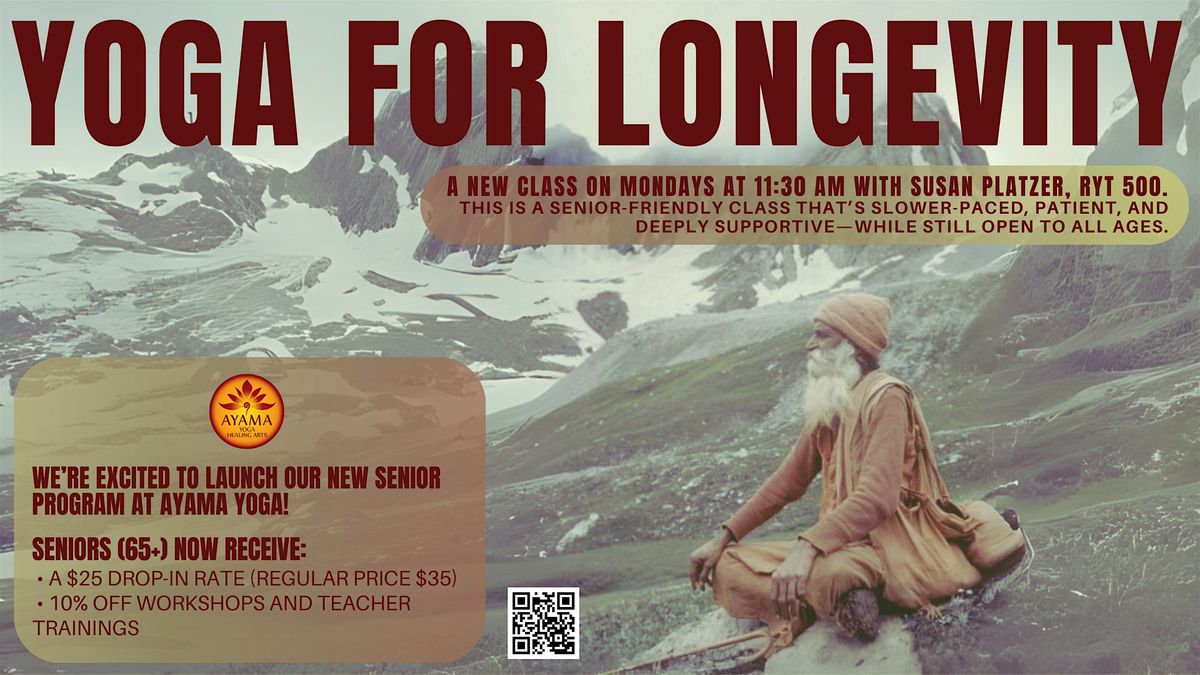Join Susan for Yoga for Longevity, a class designed to support strength, balance, mobility, and peace of mind at any age.