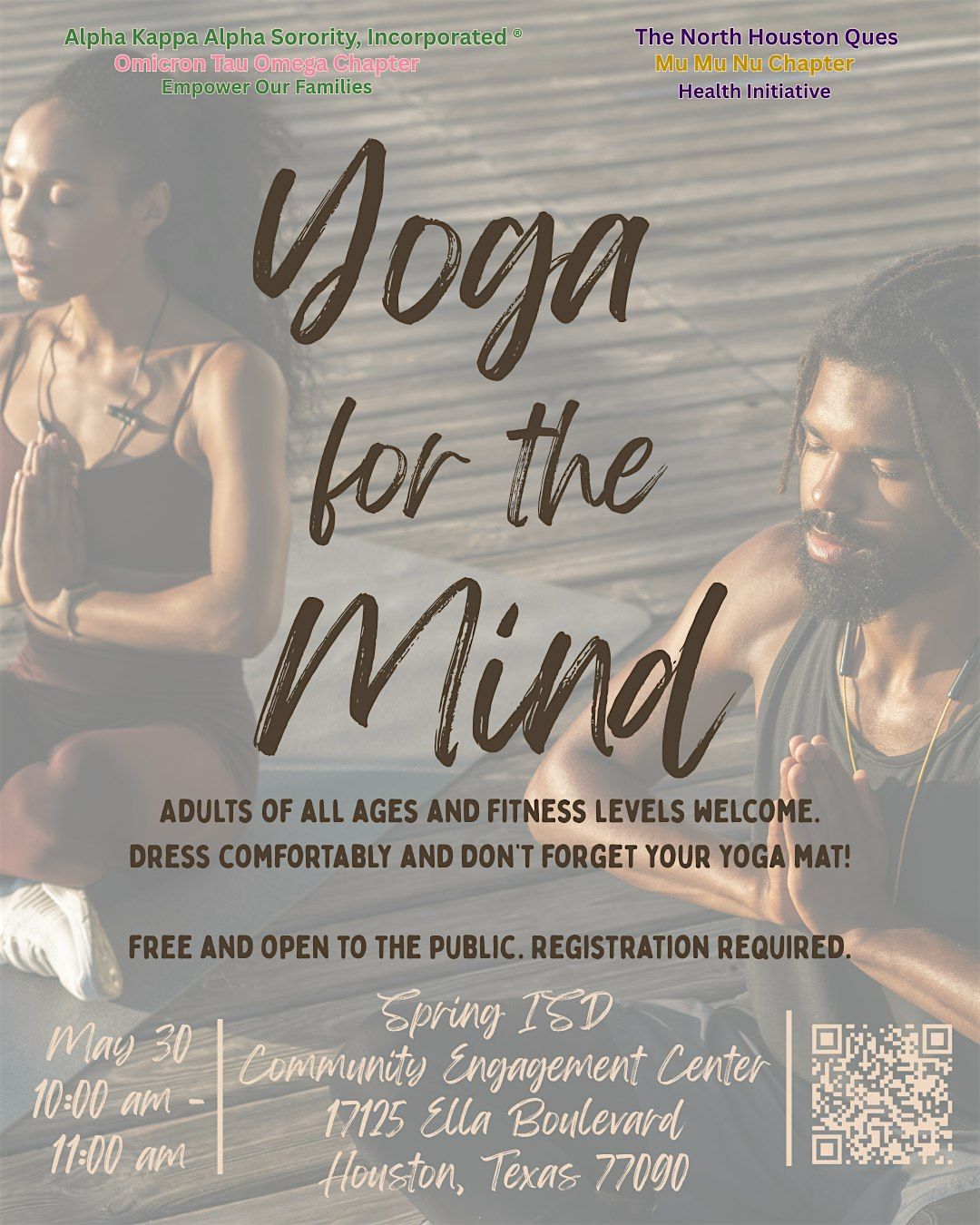 Whether you are new to yoga or experienced in your practice, this session offers a welcoming space to pause, reset, and prioritize your well-being. Together, we will honor the importance of mental health, self-care, and community as we move toward healing and restoration.