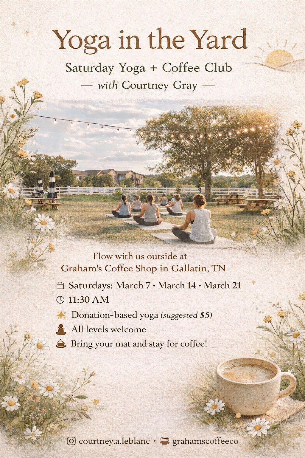 Join us at Graham's Coffee Shop in Gallatin - Grab a coffee and bring your mat!