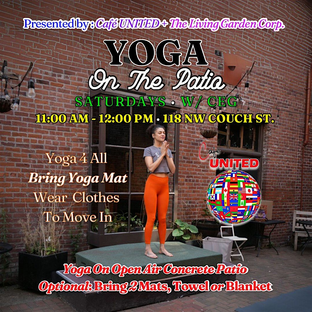 Join us every Saturday for "Yoga on the Patio" at Café United, 118 NW Couch St., 11 AM - 12 PM. All levels welcome. Bring your mat!
