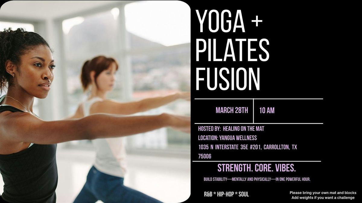 Join us for a powerful yoga + Pilates fusion designed to build strength, enhance core stability, and ground the mind. This music-infused class blends mindful movement with intentional strength work, leaving you feeling centered and empowered. All levels are welcome, with modifications provided—come ready to move, strengthen, and reset.