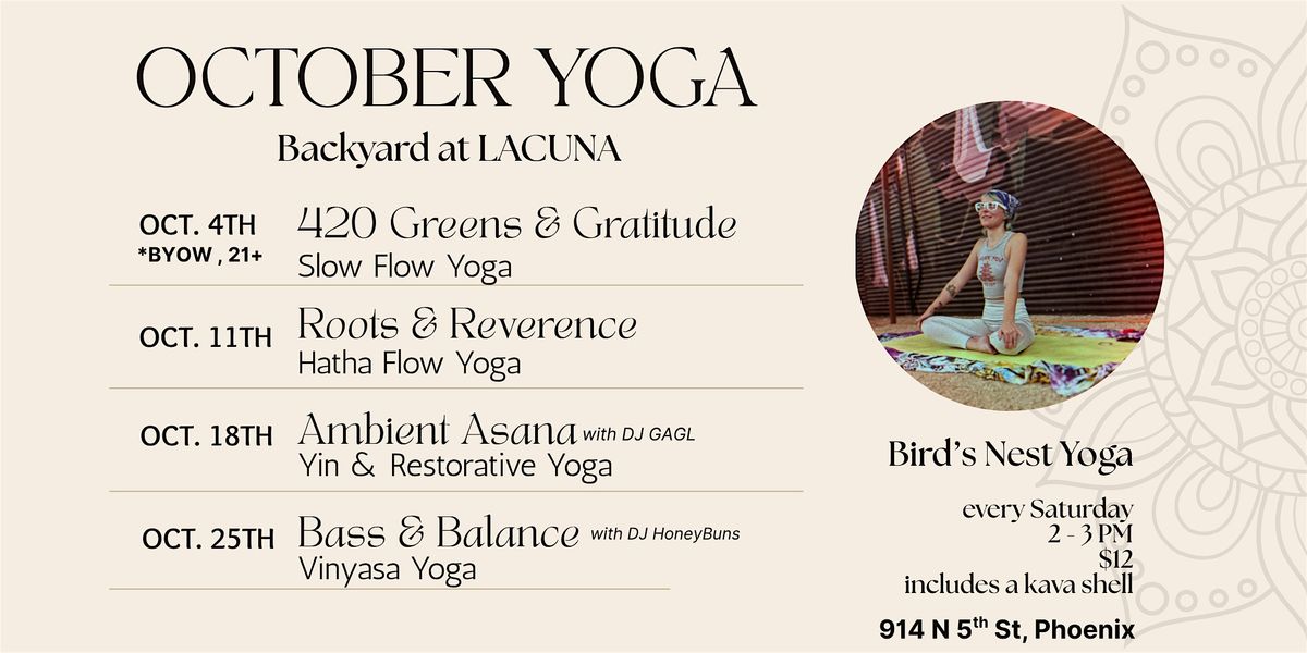 Step into your weekend flow with Bird of Bird’s Nest Yoga, guiding an inclusive, trauma-informed, and non-performative class designed for all levels and all bodies. Each week in October brings a unique themed practice to help you ground, grow, and connect.