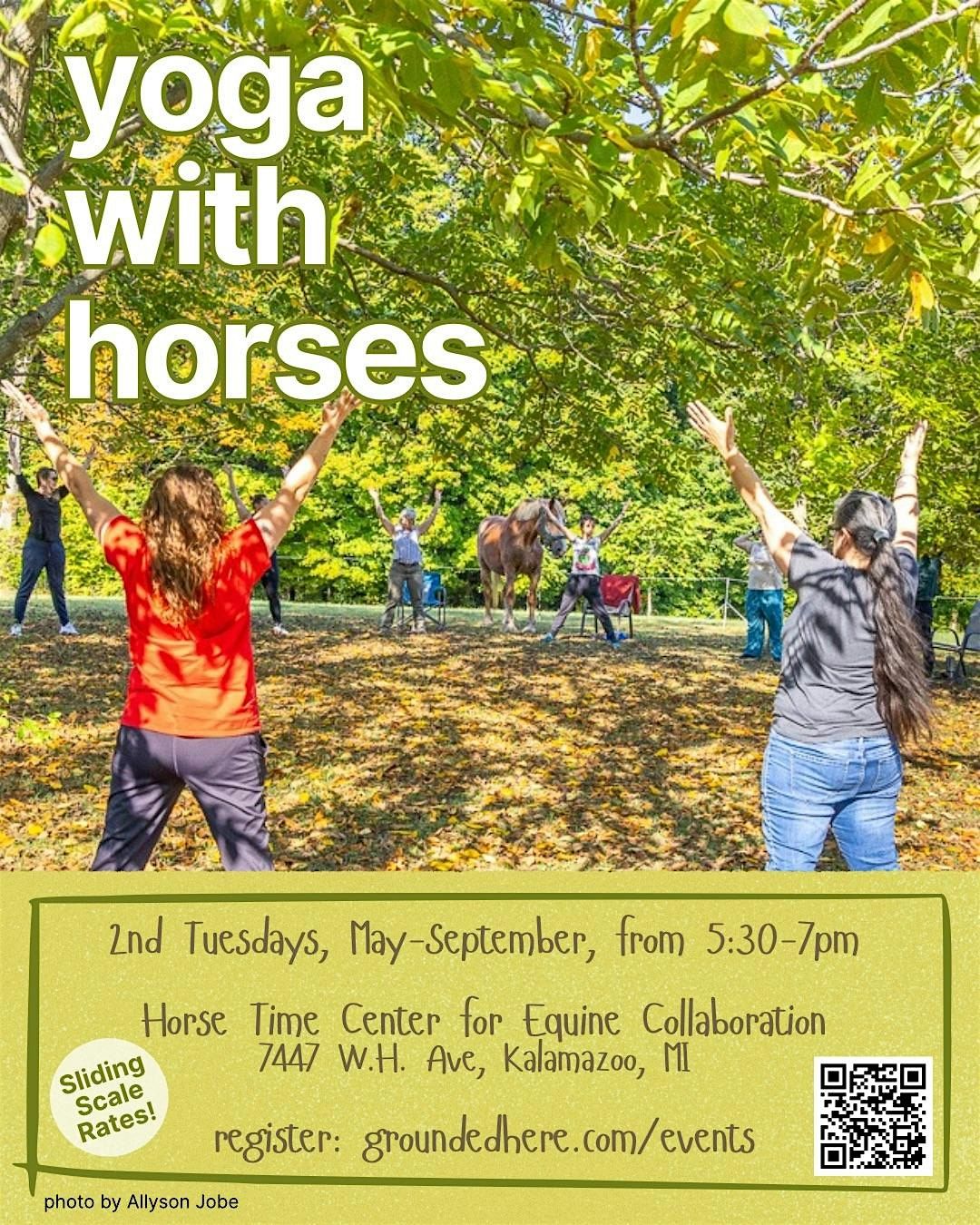 - Cost: Sliding scale: $15-45 per class date. (When you click to reserve your spot you can edit the amount you pay in the bottom box.) Profits shared between instructor, Horse Time CEC (host) and Kalamazoo Backyard Yogis (who is helping to promote).