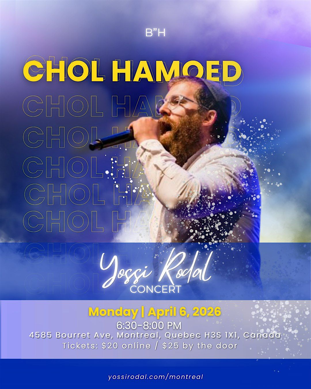 This Chol Hamoed vibe with Yossi Rodal, sing along hits like "Proud Jew" and "Freegypt". Part of proceeds will benefit the FC of Montreal