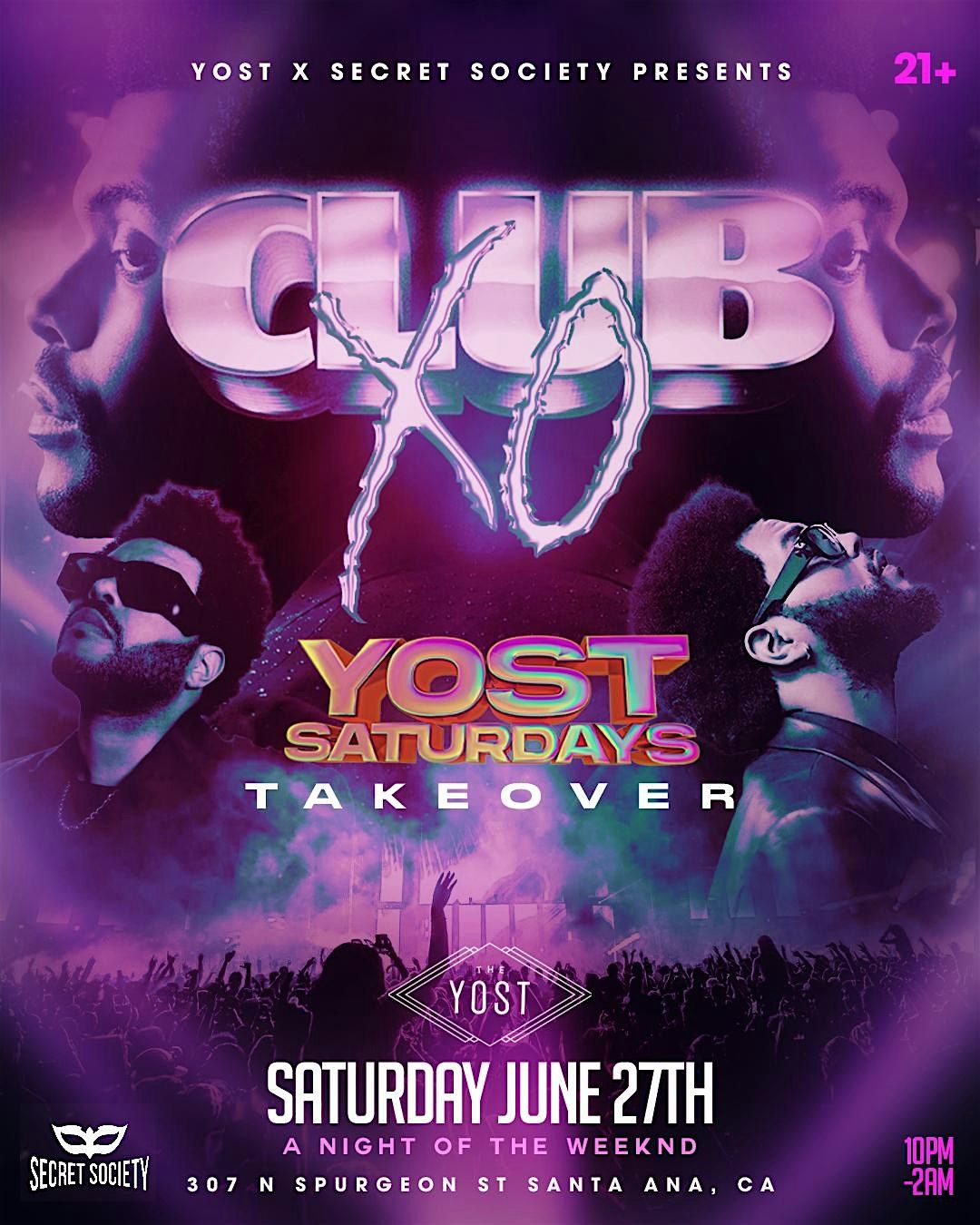 SOCAL - GET READY TO EXPERIENCE CLUB XO. We’re dancing to The Weeknd + your favorite RNB hits all night so grab your friends, Dress to impress, and get ready for an unforgettable night