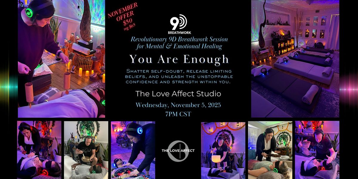 This 9D Breathwork journey helps you release self-doubt and old stories, awakening self-love, confidence, and the truth that you are enough.