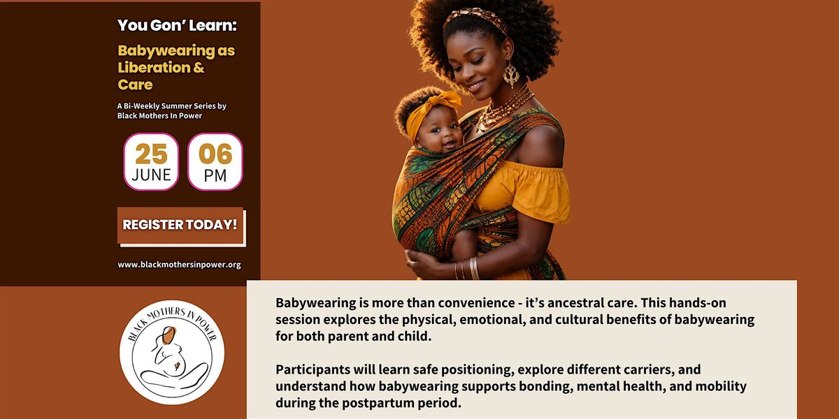 Join us in person for a chill, hands-on experience exploring how babywearing can be a powerful act of liberation and care. This series is all about connecting, learning, and supporting each other in our parenting journeys. Whether you're a newbie or a pro, come through & let’s make this summer all about community and love!