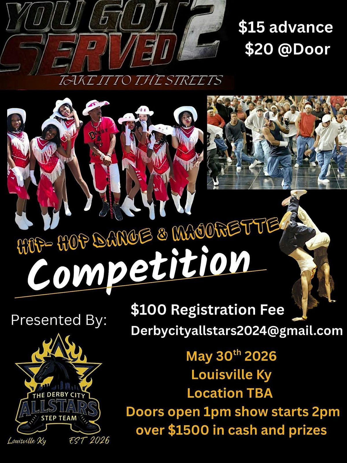 Get ready to bring it to the streets! Join us for the electrifying "You Got Served: Take It to the Streets" competition, where 12 hot teams will battle it out in an unforgettable showcase of hip hop dance and majorette style.