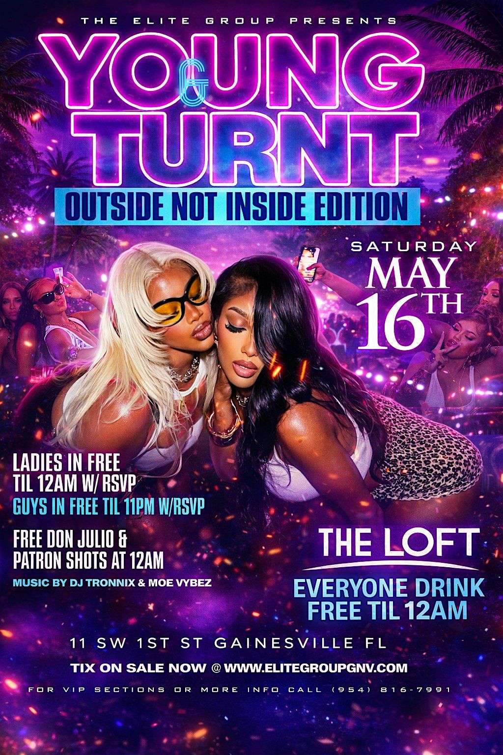 JOIN US MAY 16 TH @ THE LOFT FOR YOUNG & TURNT.. ANYTHING BUT SOBER EDITION LADIES IN FREE & DRINK FREE TIL 12 AM W\ RSVP