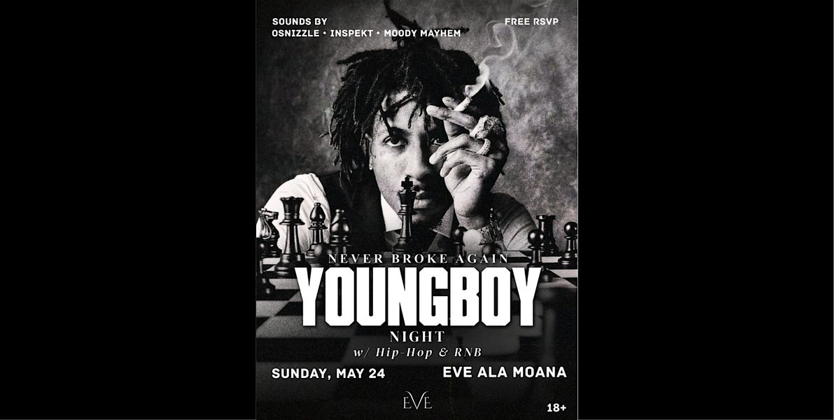 We’re taking over EVE Nightclub for a night dedicated to the one and only YoungBoy NBA. Expect nothing but his biggest hits, deep cuts, and all the energy—blended with the best of Hip-Hop, R&B, and today’s hottest tracks all night long.