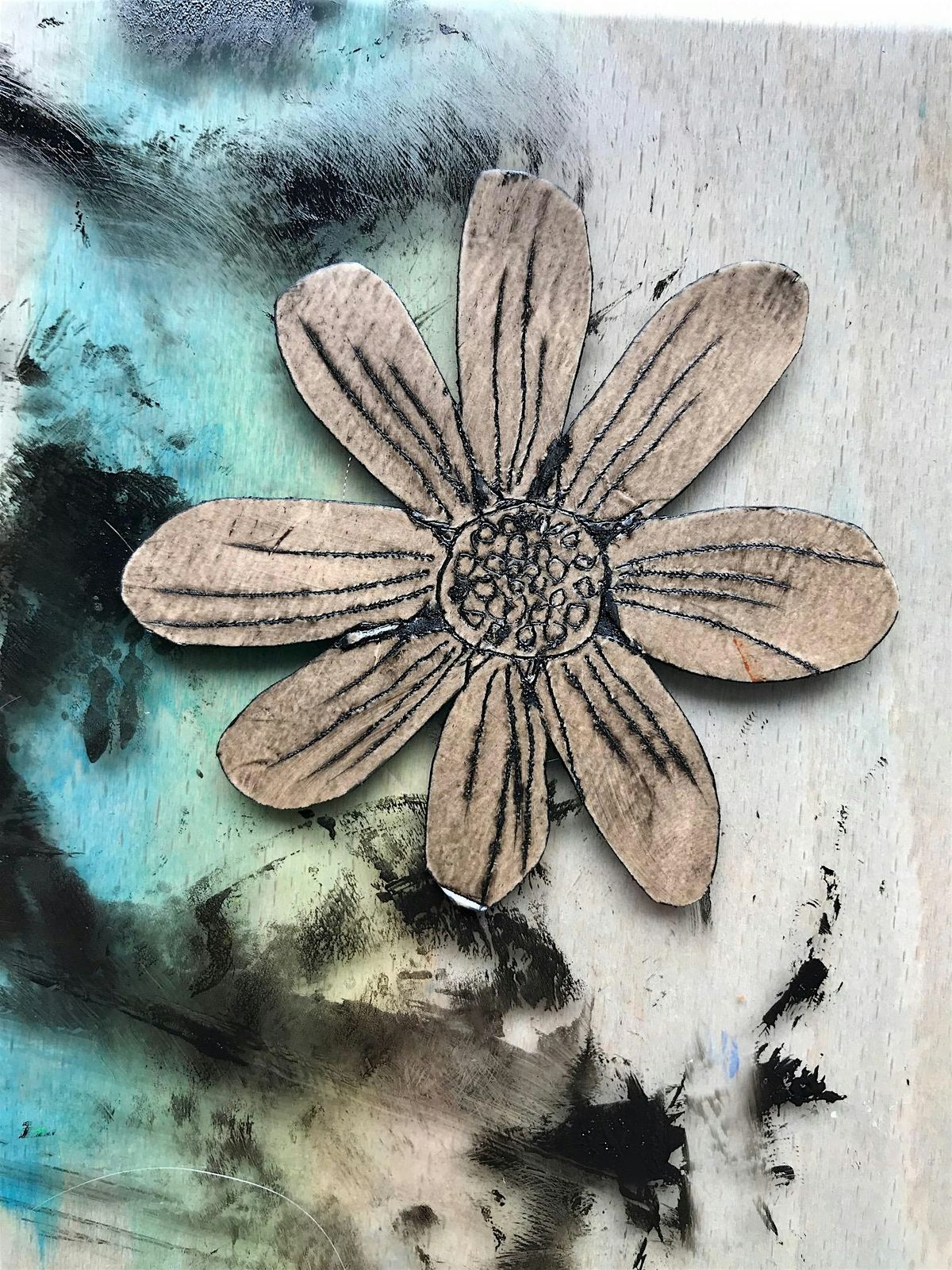 Aprille specialises in relief printmaking, monoprint and monotype, often working with mark-making, cardboard and other materials to create hybrid prints. Her playful approach to printmaking is encouraged in her workshops where she champions individual creative adventures.