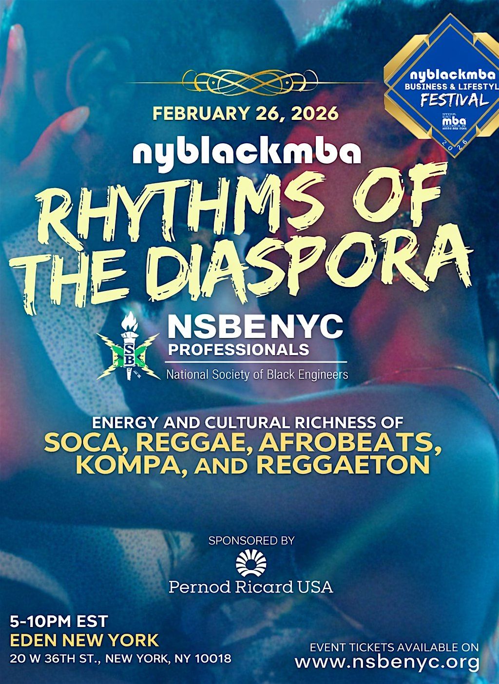 National Society of Black Engineers (NSBE) New York City & NYBLACKMBA present Rhythms of the Diaspora, a high-energy cultural celebration bringing together professionals, creatives, and community leaders from across industries to connect, network, and celebrate the global Black diaspora. From the pulse of Soca and Reggae to the rhythms of Afrobeats, Kompa, and Reggaetón, the evening honors the music and heritage that unite cultures across continents and generations. With DJ Commish and DJ Notorious commanding the soundscape, guests will experience an immersive journey where networking meets culture, and dance floors become spaces for connection, legacy, and joy.