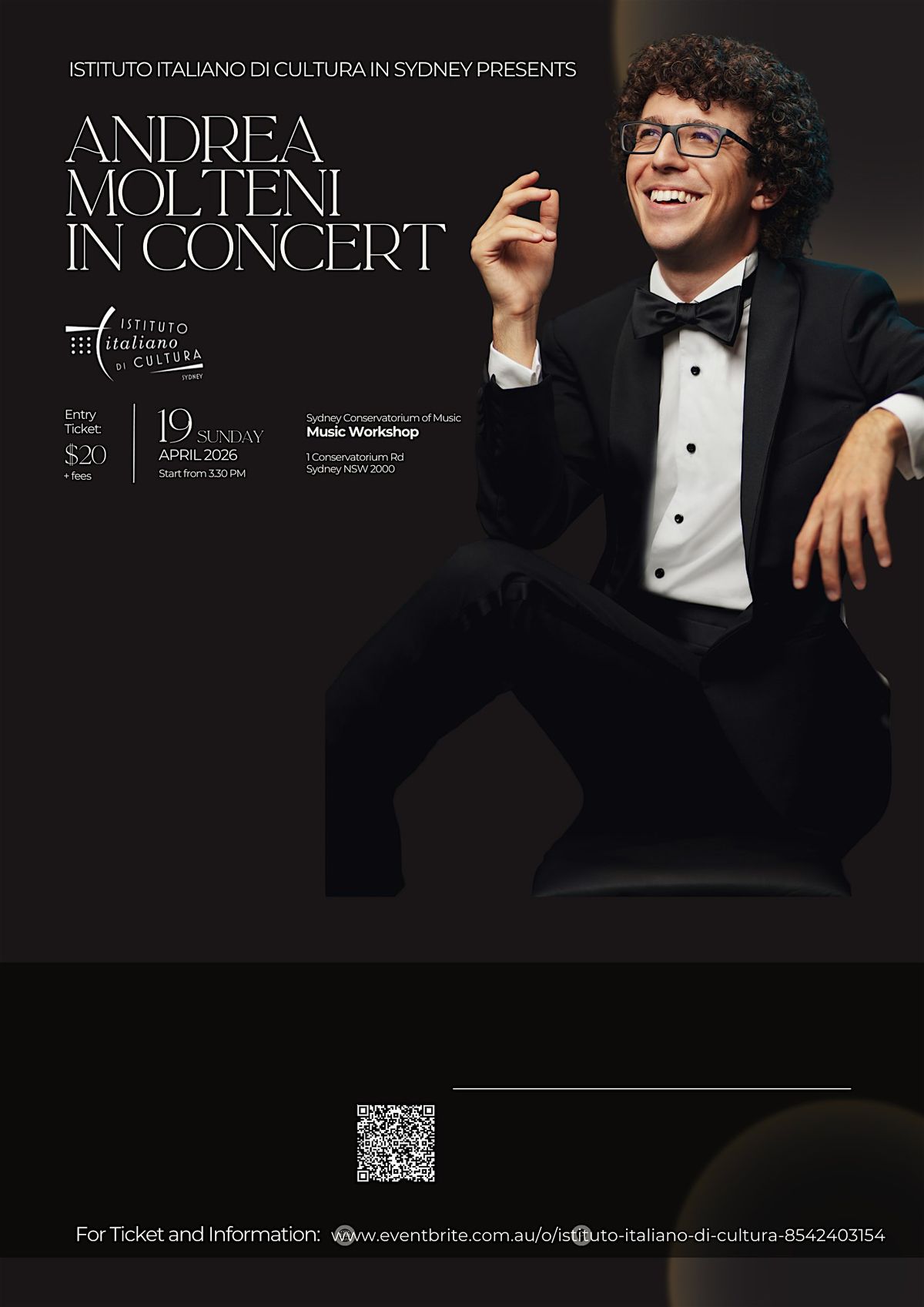 An exciting young Italian piano talent, the 27-year-old Andrea Molteni is building his international profile with regular appearances in the US, Australia, Japan, China, Singapore, UK, Italy, France, Germany, Switzerland and Turkey.