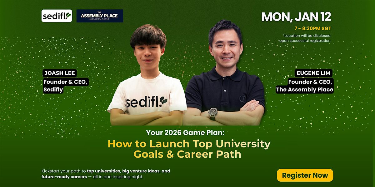 Join us for a get-together night organised by Sedifly in collaboration with The Assembly Place. This event is designed for students — whether you’re in high school, JC, or polytechnic — who want to plan ahead and build a strong foundation for their future. This could mean gaining admission to the world’s top universities, developing bold ideas, or taking the first steps toward a meaningful career.