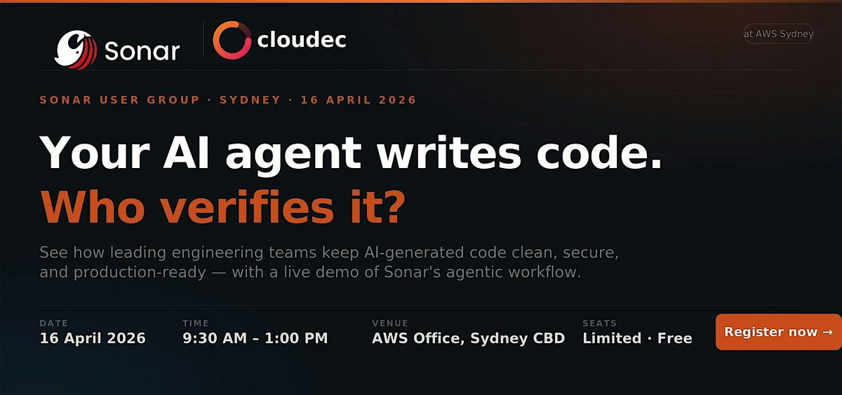 Join us for the inaugural Sonar Meetup Sydney, hosted at the AWS Sydney Office, to see how leading engineering teams are solving the last unsolved problem in agentic development: keeping AI-generated code clean, secure, and standards-compliant โ automatically.