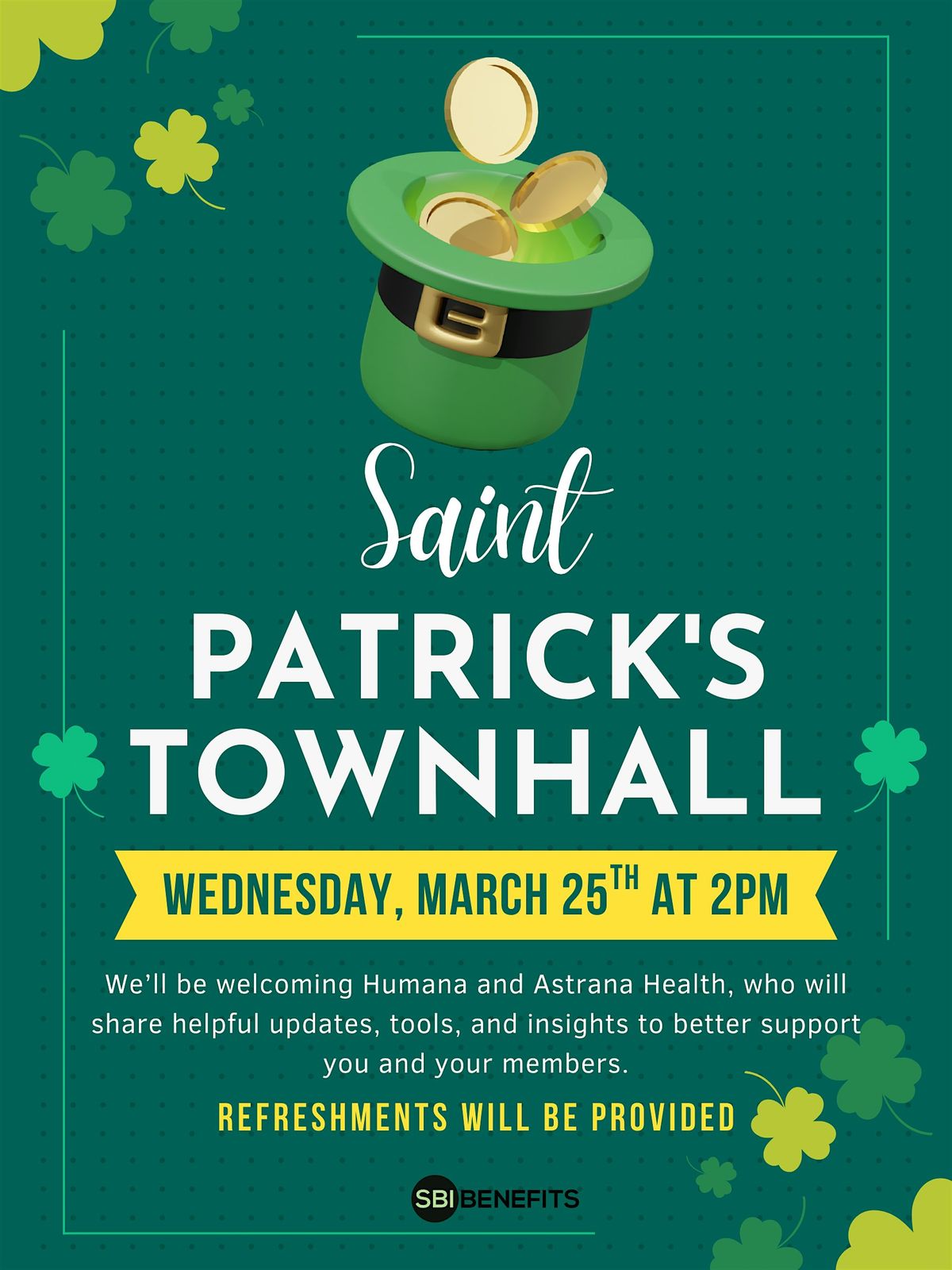 🍀 Location: SBI Benefits Office – Boulevard MallFeel free to join in the spirit of the day and wear something green! 🍀