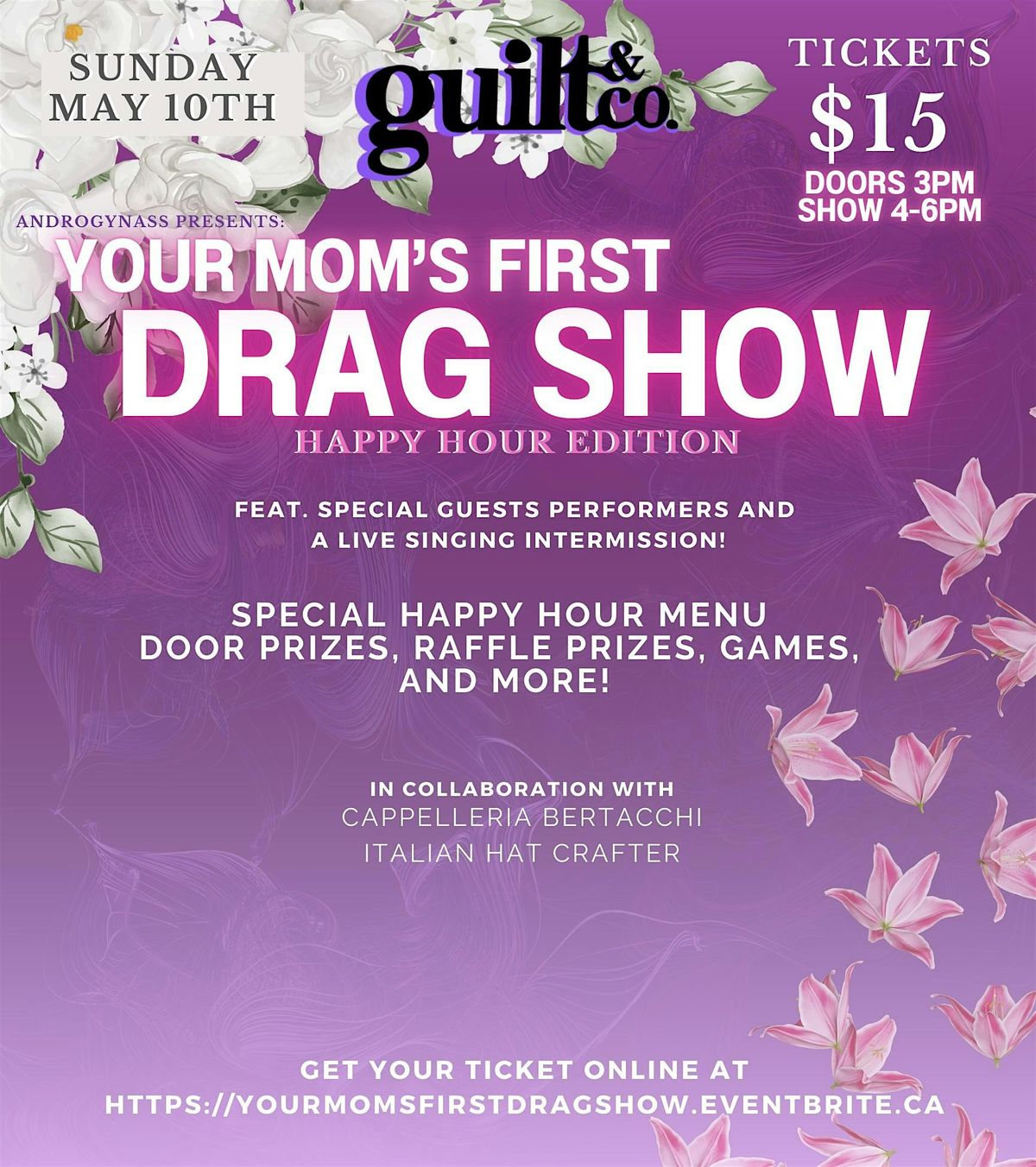Is your mom a fan of Rupauls Dragrace? Maybe she's an 80's fan and grew up with flamboyant musical icons? Well, whatever the answer may be, this is the show for her (and YOU!) Celebrate this Mother's Day with a fun interactive show experience, featuring everyone's favourite- a special HAPPY HOUR MENU!