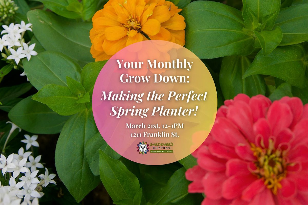 Join us for our free workshop, Your Monthly Grow Down, on March 21st from 12–1 PM at our Franklin Street location. Botanical Bill will demonstrate how to make the perfect spring planter in celebration of the new season. Enjoy a relaxed learning environment while sipping beer or wine from our bar during the demonstration!
