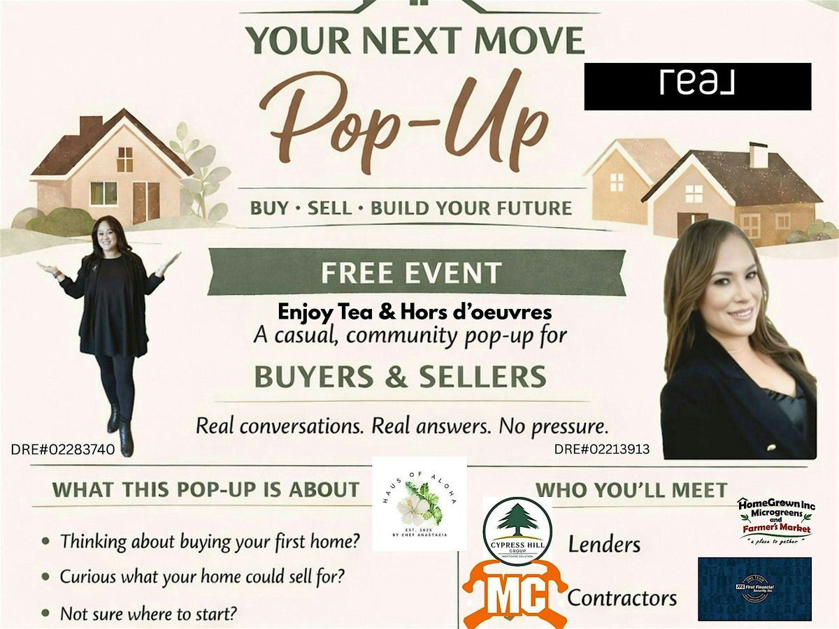 Join us for Your Next Move Pop-Up, a free, casual community event designed for anyone thinking about buying, selling, or planning their next real estate move.