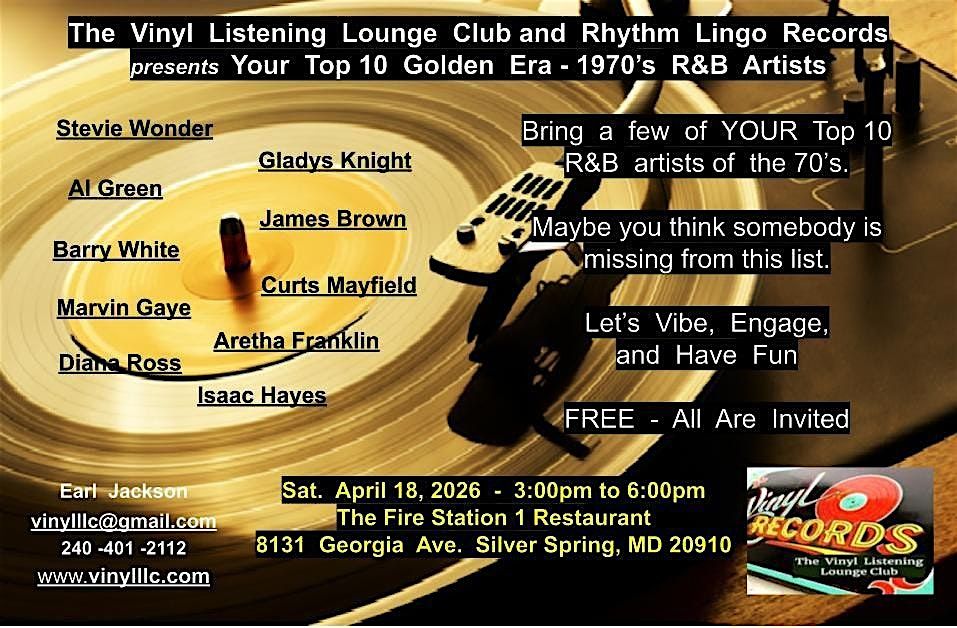 Bring a few of YOUR top 10 artist vinyl records. Whether you're a longtime fan or just love that classic groove, this is the perfect chance to celebrate the golden era of soul and rhythm. Don’t miss out on a chill afternoon filled with smooth tunes and good vibes!