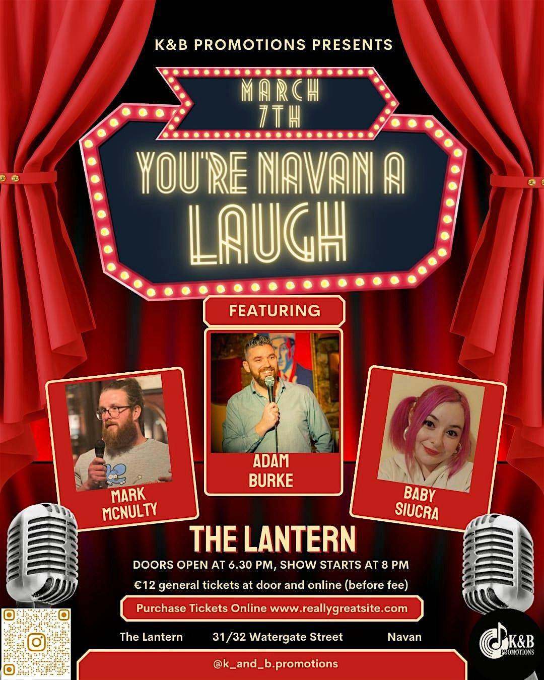 You’re Navan A Laugh presents Adam Burke, Baby Siucra & Mark McNulty, a stacked line-up and a night of nonstop comedy.