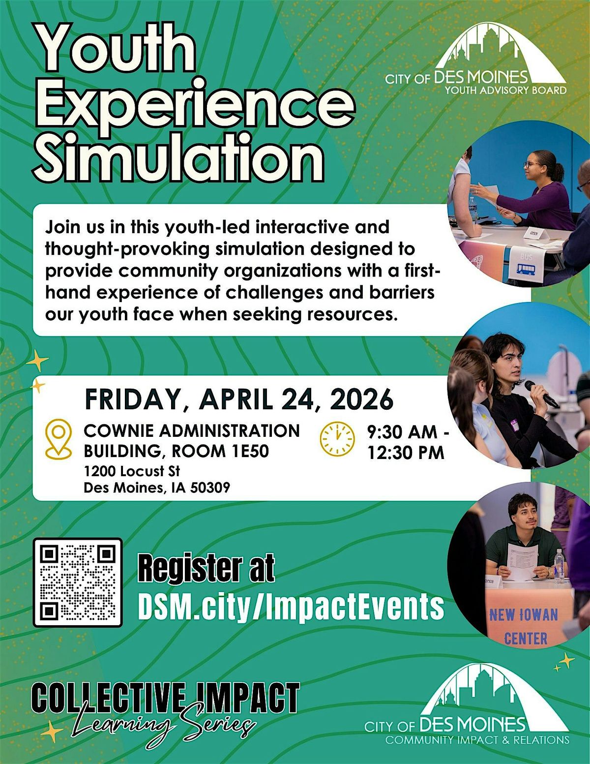 The City of Des Moines Youth Advisory Board (YAB) is organizing a Youth Experience Simulation on Friday, April 24, where community organizations will have the opportunity to step into the shoes of the youth living within the City of Des Moines. This interactive and thought-provoking simulation is designed to provide participants with a firsthand experience of the daily struggles and decisions that our youth encounter.