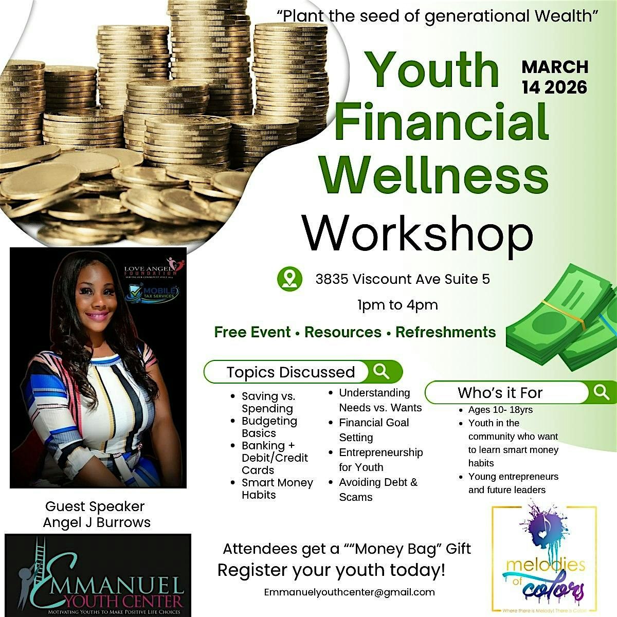 Our Financial Wellness Workshop is a community-centered event designed to educate, empower, and uplift youth and families on their financial journey. This free event will take place on March 14th and will feature dynamic guest speakers who will share practical tools on budgeting, saving, credit building, entrepreneurship, and long-term wealth strategies.
