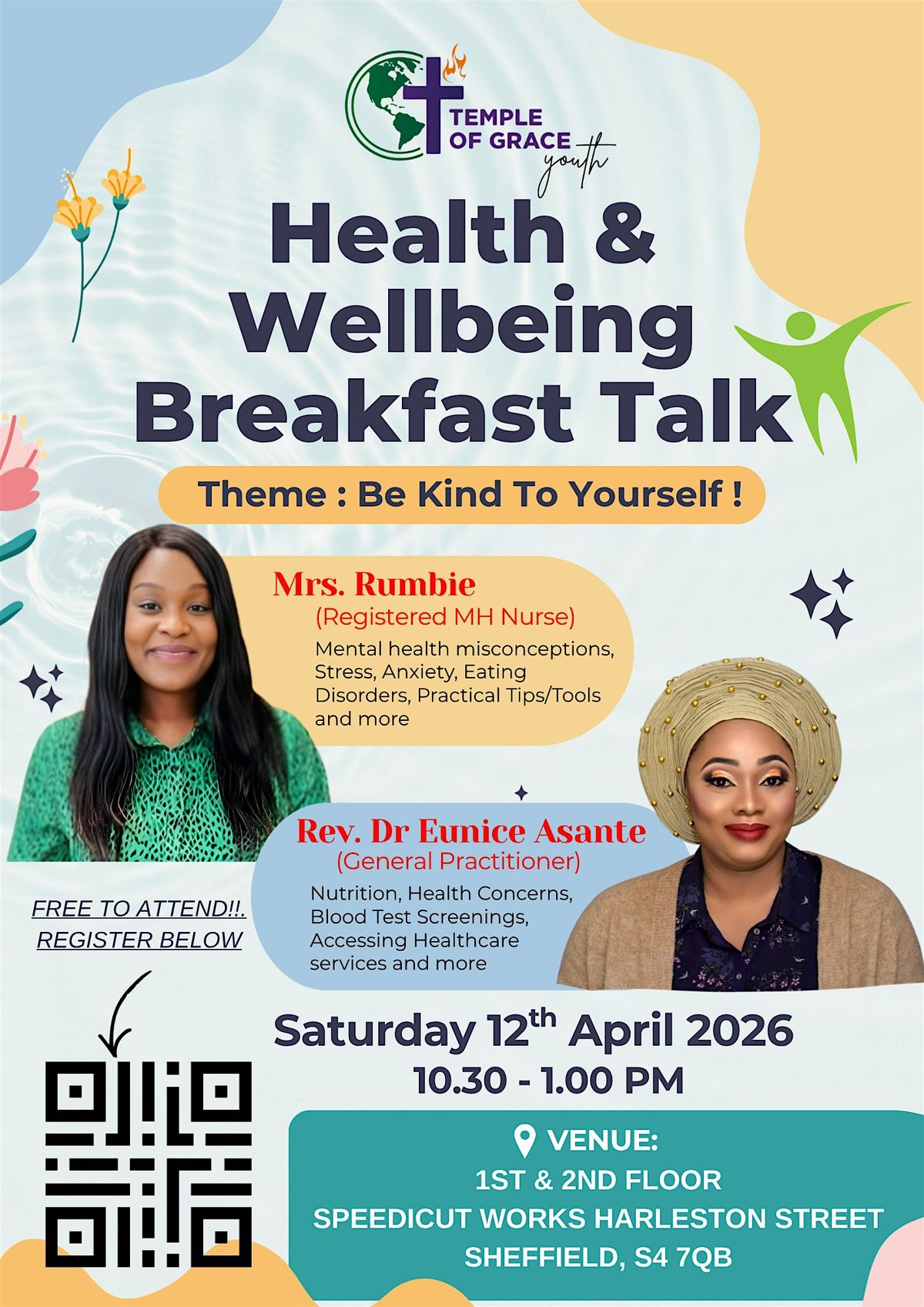 Join us on Saturday April 11, 2026 at 11:00 AM (BST) at the Temple of Grace Church Sheffield for a relaxed morning chat all about youth health and wellbeing. This is a chance to hear from our speakers about mental and physical health issues that matter to us as youth as well as an opportunity to ask questions.