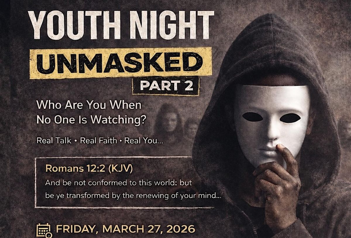 Join us for UNMASKED, an engaging and uplifting Youth and Young Adult Night designed to create a safe space for honest conversations about life, faith, identity, and purpose.