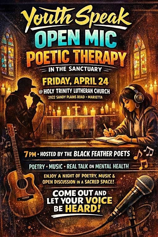 Join us in person for Youth Speak Open Mic Poetic Therapy—a chill space where young voices can shine. Whether you’re into poetry, spoken word, or just vibing with creative souls, this is your spot to express, connect, and heal through words. Step up to the mic or just soak in the powerful energy. Let’s turn feelings into art and make some unforgettable moments together!