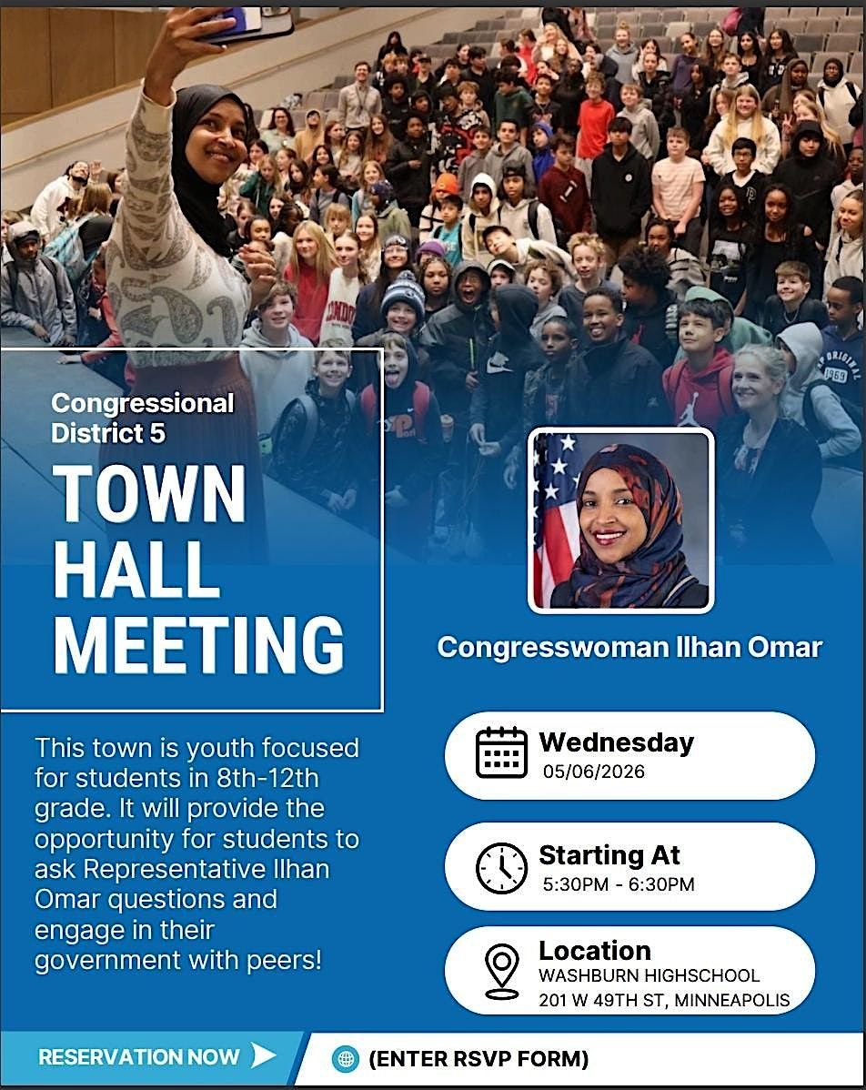 Congresswoman Omar will provide an update on her work in Congress, discuss the services her office can provide, and answer your questions.