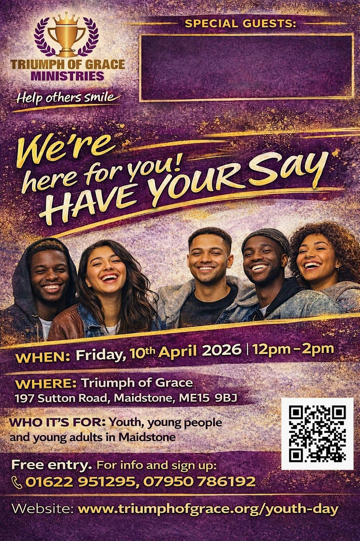 Triumph of Grace's "Maidstone Youthful Club" warmly invites you to our special:
