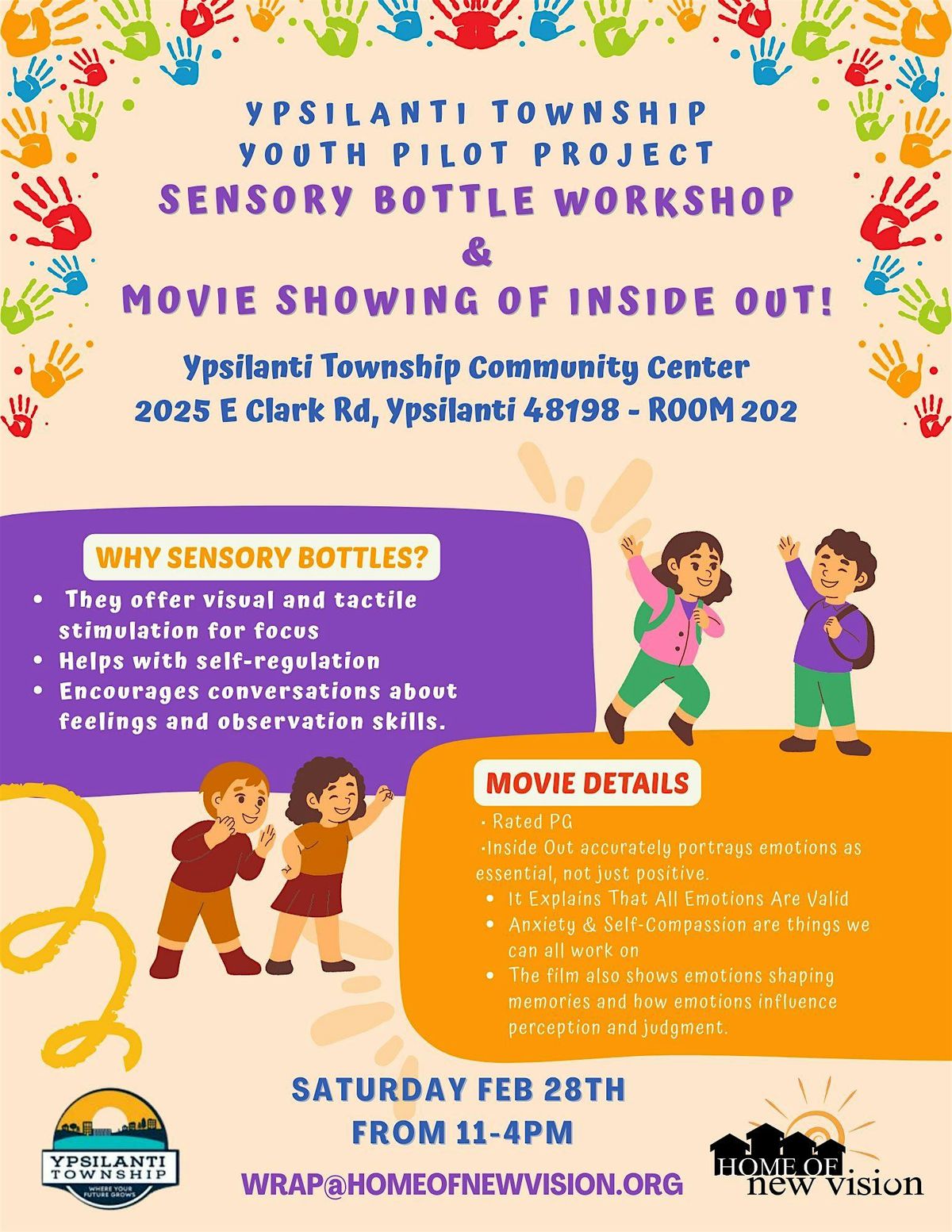 Sensory bottles can help with calming, focus, emotional regulation, and skill development! They're used for self-regulation during big emotions, transitions, or to support learning goals like cause-and-effect and fine motor control. We hope you can join us for this fun, creative workshop where the community connects, and youth have a safe and resourceful place to go!