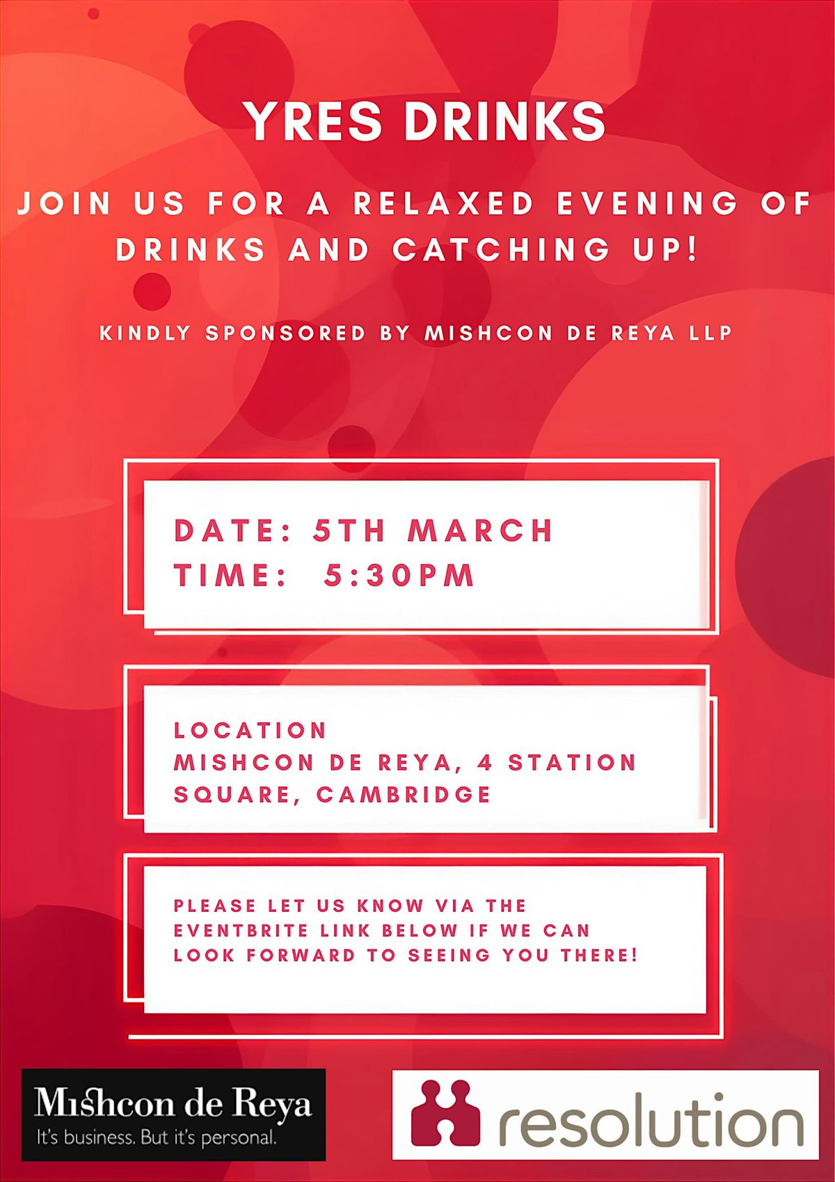 Join us for a fun and relaxed night at the YRes Drinks Evening! Itβs the perfect chance to meet new people (or catch up with familiar faces), chat over some great drinks, and unwind after a busy day. Hope to see you there!