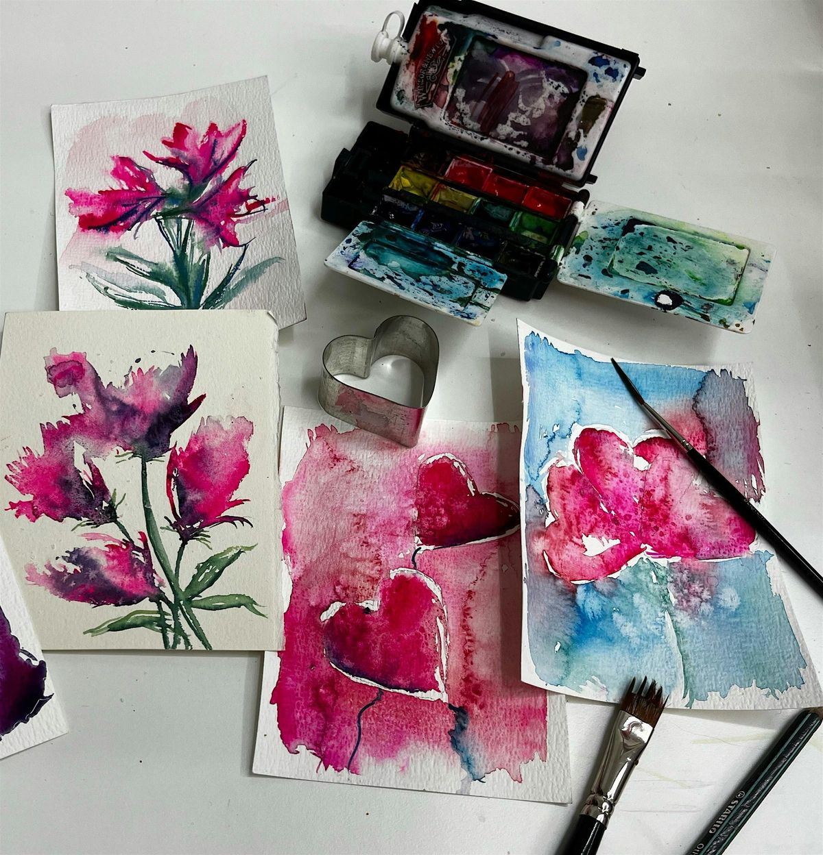 Ystävänpäivän akvarellikortit – kurssi