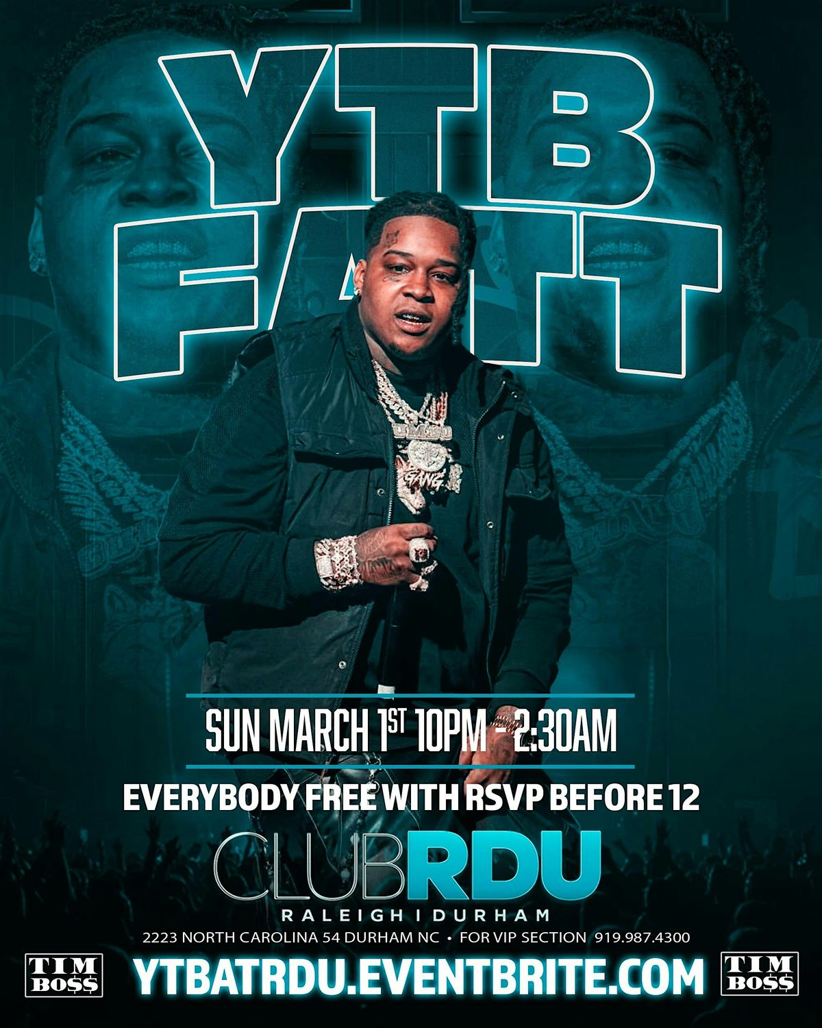 YTB FATT will be performing at CLUB RDU for the first time ever , free with RSVP before 12 midnight , for VIP SECTIONS call 9199874300