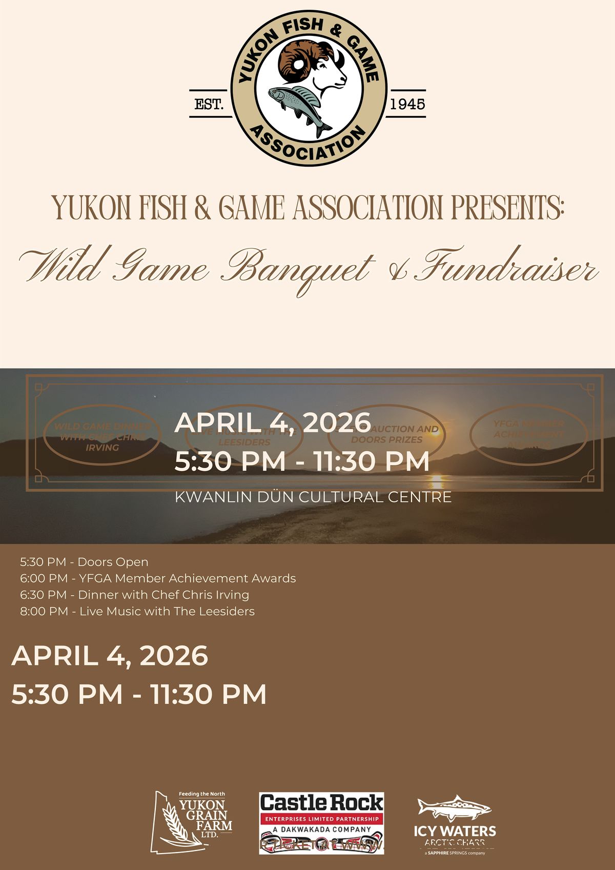 Celebrate Yukon’s hunting, fishing, and outdoor heritage at the Yukon Fish & Game Association’s 2026 Wild Game Banquet & Fundraiser!