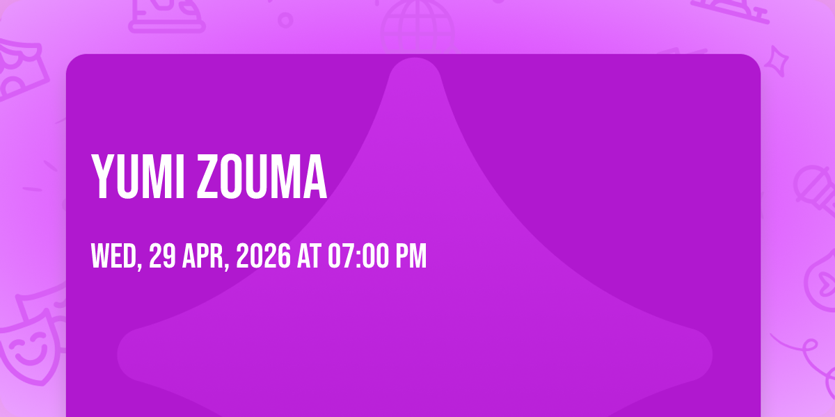 ✨ Experience the magic of Yumi Zouma, where moments become memories that last a lifetime! 🏛️ The iconic Black Cat - DC in Washington, DC sets the perfect stage for an unforgettable celebration on April 29th, 2026 at 07:00 PM. 🌟 It's been a curated experience that brings together the best of entertainment and innovation, creating an atmosphere of wonder and excitement. From the moment you arrive, you'll be immersed in a world where the ordinary transforms into the extraordinary. 🎊 Book early to secure your place in what promises to be an event that will be talked about for years to come!http://maps.seatics.com/GeneralAdmissionEvent_2018-10-03_1713_SVGC_tn.gif